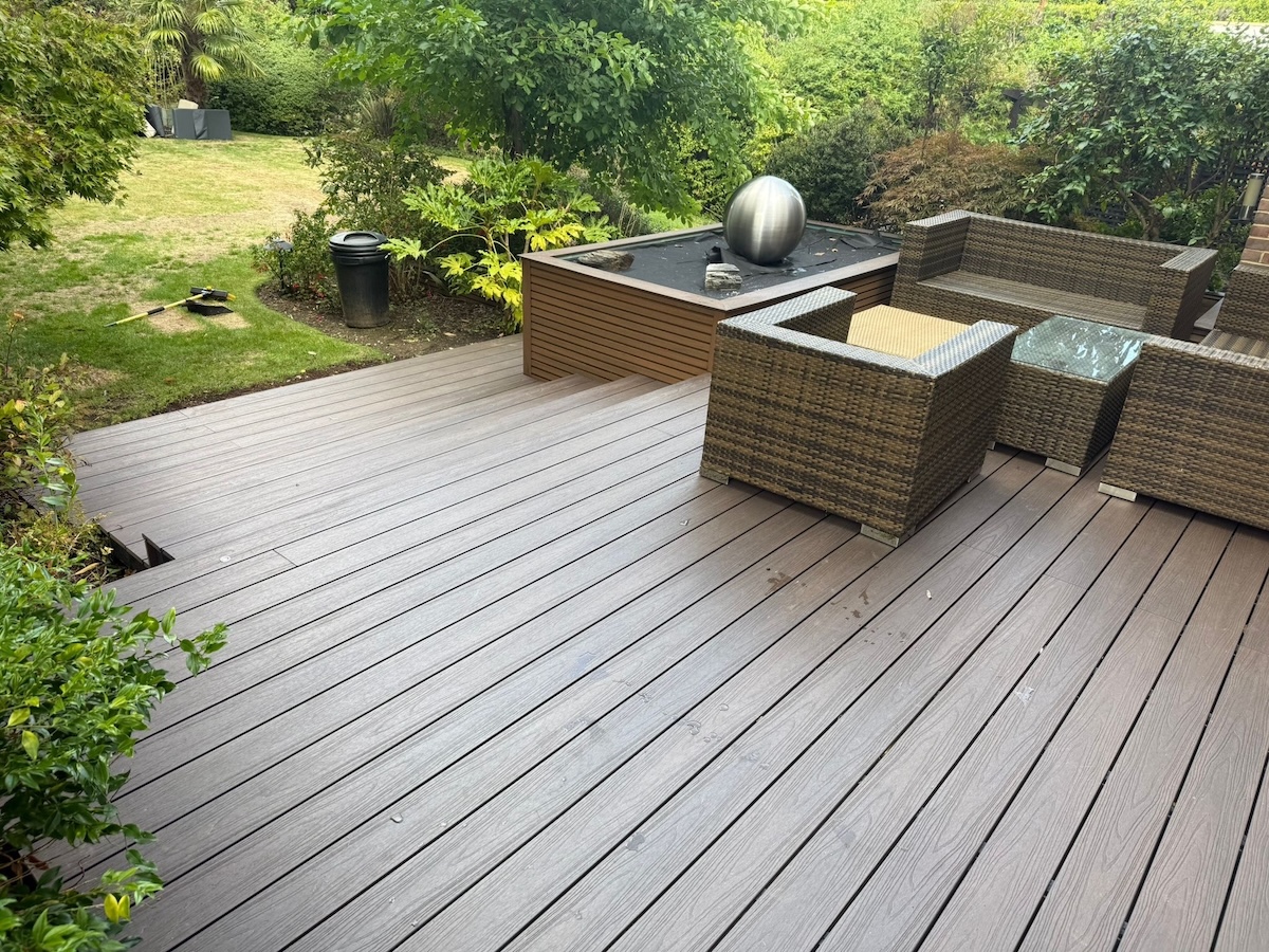 Composite decking offers a number of advantages over traditional wood decking. It is highly durable, resistant to rot, warping, and insect damage, making it ideal for long-term outdoor use. Unlike natural wood, it requires minimal maintenance so there is no need for sanding, staining, or sealing—just occasional cleaning with soap and water. Composite boards are also made from recycled materials, making them an eco-friendly option. They also come in a wide variety of colours and finishes that mimic the look of natural wood, enhancing curb appeal. Slip-resistant surfaces improve safety, while long warranties provide peace of mind, ensuring a cost-effective and attractive decking solution.